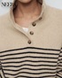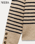 The beige and brown striped sweater is an essential garment for the autumn and winter wardrobe. Made with high quality materials, this sweater offers comfort and warmth on cooler days. Beige and brown stripes give a classic and versatile touch, perfect to be combined with elegant jeans or trousers. The simple but trendy design makes this sweater suitable for both casual and more formal events. Stay warm and fashionable with this striped sweater, ideal for any occasion.