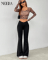 Add a touch of retro style to your wardrobe with NEERA black elephant-legged trousers. Made of a high quality fabric that guarantees comfort and durability, these trousers are perfect for those who want a vintage but sophisticated look. The high waist accentuates your figure, while the elephant-legged design offers elegant fluidity and movement. The functional side pockets add a practical element, making them suitable for both casual and formal occasions.