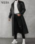 Make your style unique with the NEERA black leather trench coat, a piece that combines elegance and modernity.