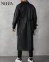 Black Leather Trench Coat with Modern Details
