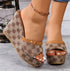 SANDALES COMPENSÉES EN TOILE MONOGRAMME AVEC DÉTAIL EN SIMILI CUIR