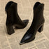 Des bottes en cuir avec une touche d'audace.  Dotées d'un design élégant et séduisant, ces bottes sont rehaussées d'une pointe chromée frappante qui contraste magnifiquement avec le cuir riche et sombre. Parfaites pour la saison, elles dégagent une aura sombre et magnétique.