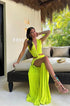 Affichez votre style avec la robe longue sans manches à découpes latérales et décolleté en V profond. Dotée de découpes latérales saisissantes et d'un décolleté en V profond, cette robe longue en polyester offre une coupe flatteuse et une touche d'élégance moderne. Son tissu légèrement extensible assure un confort optimal, tandis que sa coupe sans manches et sa longueur maxi la rendent idéale pour toutes les occasions glamour.