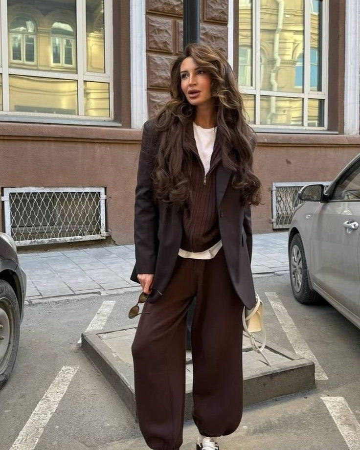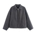 Veste d’hiver femme marron avec col en pointe et fermeture éclair casual
