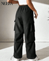 Update your wardrobe with these women's cargo pants. Perfect for a casual yet polished look, these pants combine functionality with style. Crafted from durable, breathable fabric, they offer a comfortable fit all day long. The multiple cargo pockets are not only a fashionable detail, but also extremely practical for carrying all your essentials. The high waist and drawstring closure add a modern touch and an adjustable fit. Pair them with a fitted t-shirt or a relaxed blouse for a versatile and trendy outfit.