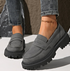 Amélie | Comfortable dark gray suede loafers with a thick, cushioned sole