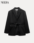 This blazer is the perfect mix of elegance and modernity. Crafted from high-quality fabrics, it offers an impeccable fit and unparalleled comfort. The knotted belt adds a chic and contemporary detail, enhancing the silhouette in a refined way. The versatile design makes it ideal for both a professional look in the office and for a night out. The knotted belt gives a distinctive and feminine touch. A must-have for those looking for style and functionality in a single garment.