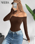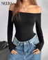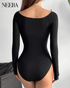 Discover the charm of the NEERA body with bare shoulders, a garment that combines elegance and sensuality. Made of high quality elastic fabric, this body offers a tight fit that enhances the silhouette. The long sleeves and the uncovered shoulder design create a perfect balance between coverage and seduction, making it ideal for special evenings and elegant occasions. The snap closure at the bottom guarantees practicality and comfort.