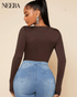 Elevate your style with this long-sleeved bodysuit, perfect for any occasion, both formal and casual. Made of high quality elastic fabric, it offers a snug and comfortable fit that enhances your silhouette. The elegant design features a high collar and refined details that add a touch of class to your wardrobe. The body is equipped with a practical snap closure at the bottom for easy use.