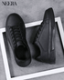 Scarpe, Sneakers in pelle nera per primavera e autunno