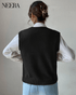 Add a touch of timeless elegance to your wardrobe with this cable knit sleeveless sweater. Crafted from premium wool, this piece offers exceptional comfort and cozy warmth, perfect for cooler days. The sophisticated cable design adds depth and style, while the relaxed fit ensures a refined and comfortable silhouette. The versatile and chic black colorway makes this sweater ideal for everything from a day at the office to a casual night out. Wear it over a white shirt for a smart look or pair it with jeans for a more casual and fashionable outfit.