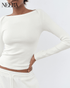 Long-sleeved T-shirt, made of Barco Rib stretch fabric for a tight and comfortable fit. The boat neckline adds a touch of elegance, ideal to combine with elegant jeans or trousers. Versatile and fashionable, it is perfect both alone and under a jacket, making it an essential garment for everyday wardrobe.